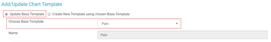 - The Add/Update Chart Template page defaults to the Update Base Template radio button.