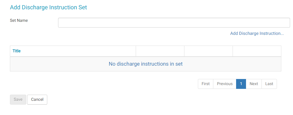 The Discharge Instruction Sets page is where individual Discharge Instructions are grouped together into sets.