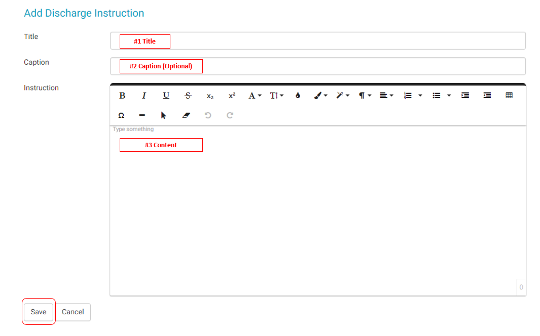 • Enter a Title for the Discharge Instruction