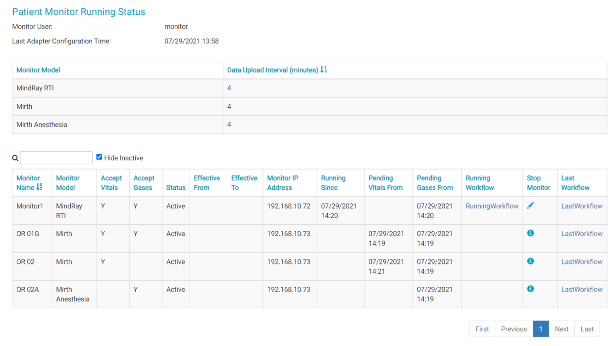 Running Status is available to users with the Patient Monitor permission. Running Status is most commonly used when troubleshooting monitor interface issues.