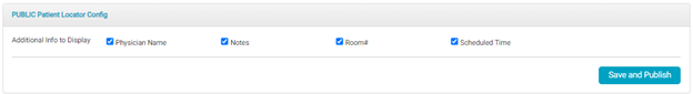 At a minimum, the public display includes the patient number and the patient’s current location. The current location is based on the Location/Room in the most recently documented Room In BLOC.