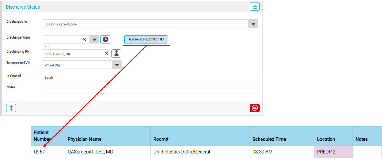 If the patient is prematurely discharged using the Discharge Status BLOC 058, the user simply needs to clear the Discharge Time and click “Generate Locator ID” and a new ID will be generated. This ID will NOT be the same as the previous ID, so staff will need to communicate this new identifier to the family or escort.